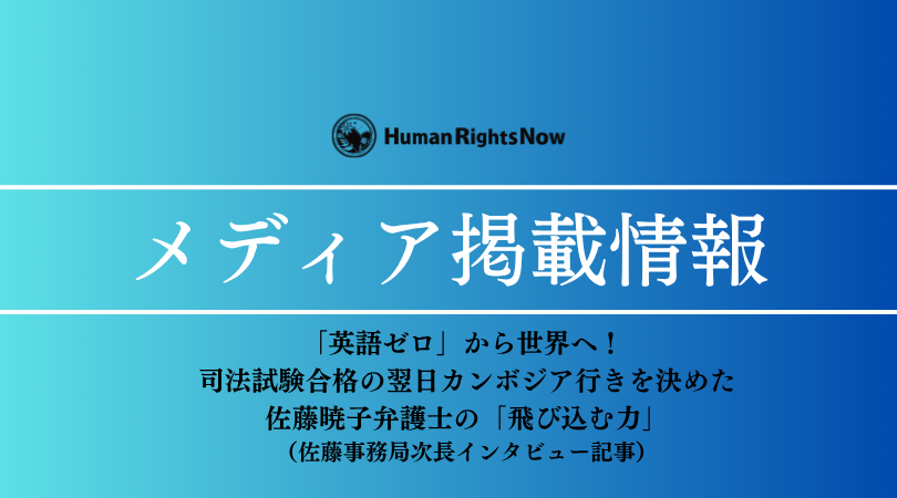 【メディア掲載情報】「英語ゼロ」から世界へ!司法試験合格の翌日カンボジア行きを決めた佐藤暁子弁護士の「飛び込む力」