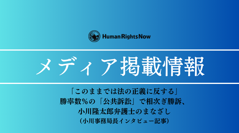 Webメディア「弁護士ドットコムニュース」にて、当団体事務局長の小川隆太郎弁護士が紹介されました。 URLより記事の内容をご覧いただけます。 https://www.bengo4.com/c_18/n_20155/