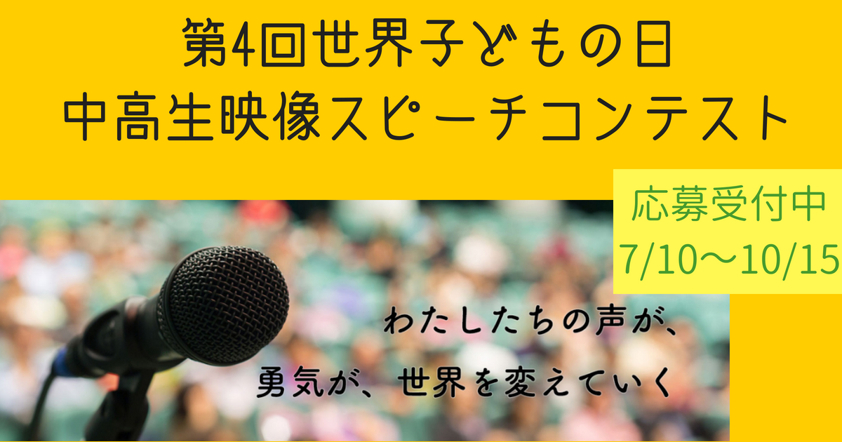 第4回世界子どもの日中高生映像スピーチコンテスト Published 2018/07/09 at 1200 × 630 in 第4回世界子どもの日中高生映像スピーチコンテスト ← Previous Next →