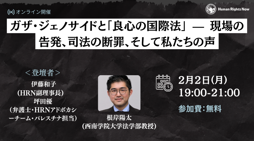 【2/2㈪ウェビナー】ガザ・ジェノサイドと「良心の国際法」 — 現場の告発、司法の断罪、そして私たちの声