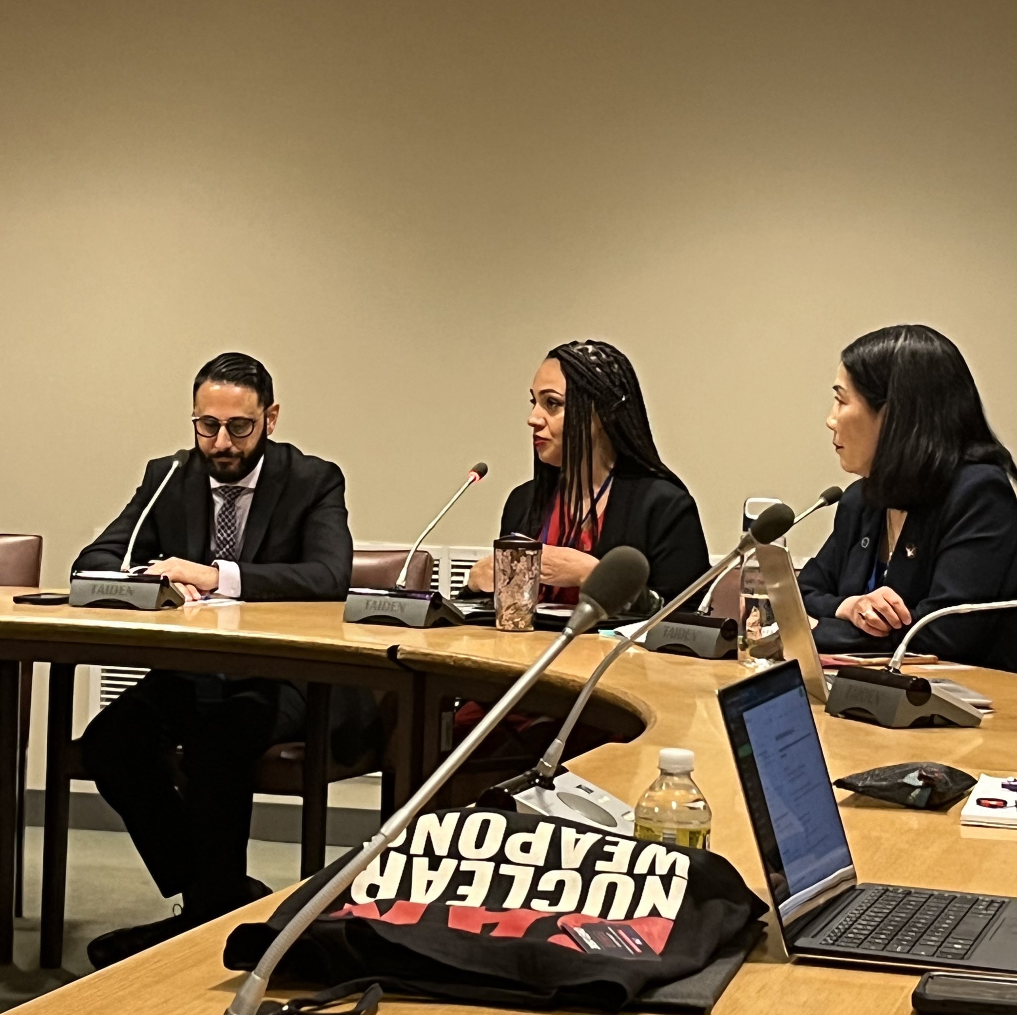 In addition to listening to the perspectives of nuclear disarmament experts, academics, and activists at Side Events, arguably the most powerful Side Events were those organized by members of affected communities themselves. The Side Event titled “Voices from the Second-Generation Atomic Bomb Survivors of Hiroshima and Nagasaki: Towards the Establishment of the Human Rights of Radiation Victims (Hiroshima) Including Future Generations and the Realization of the Nuclear-Free World,” organized by the Japanese Liaison Council of Second-Generation Atomic Bomb Survivors (JLCSGABS), featured panelists that were all second or third-generation atomic bomb survivors themselves. By sharing the trans-generation physical, social, and economic effects of the atomic bombs that the panelists first-hand experience themselves, this Side Event powerfully demonstrated that trans-generational effects of nuclear weapons are real and that second and third-generation survivors of the atomic bombs should be included in Victim Assistance measures, such as the Victim Assistance Clause of the Treaty on the Prohibition of Nuclear Weapons (TPNW) [7].