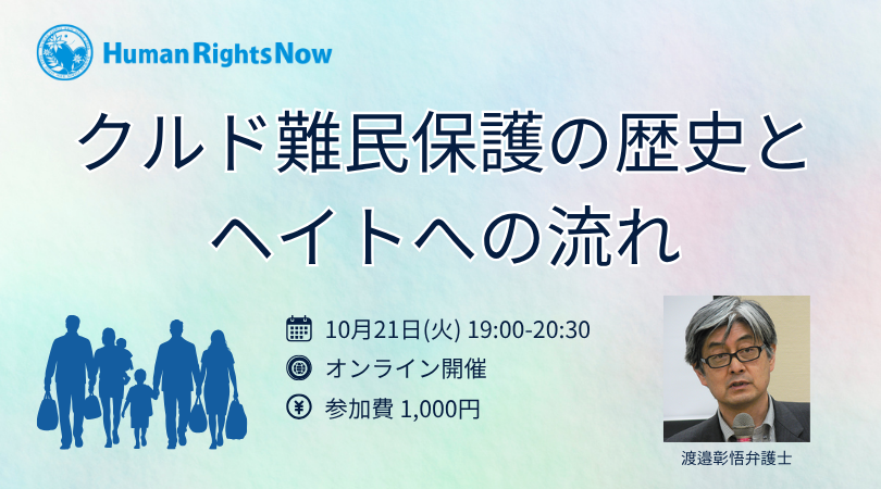 では、なぜこのような問題が起きているのでしょうか。クルド人は「国家を持たない最大の民族」とも呼ばれ、トルコやシリアなどで少数民族として長年迫害を受けてきました。本ウェビナーでは、全国難民弁護団連絡会議代表を務める渡邉彰悟弁護士を招き、クルド難民保護の歴史を振り返り、問題の本質を考えます。