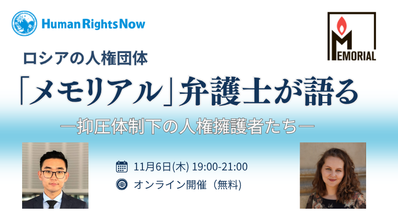 rev1①メモリアルバナー案 Published 2025/10/16 at 810 × 450 in 【11/6(木)ウェビナー】ロシアの人権団体「メモリアル」弁護士が語る―抑圧体制下の人権擁護者たち― Next →