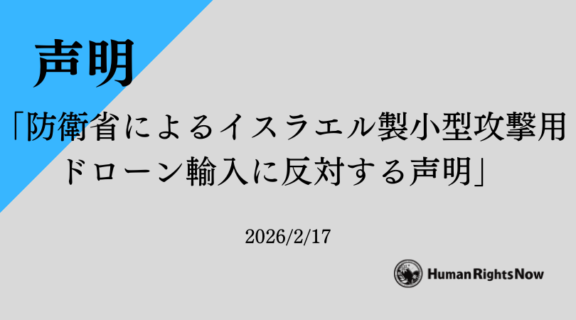 ヒューマンライツ・ナウは、防衛省によるイスラエル製小型攻撃ドローンの輸入に反対し、日本政府に対して、今後、IAIを含むイスラエル軍需企業との一切の取引及びその検討の中止を求める声明を公表しました。 ◇ダウンロードはこちら …